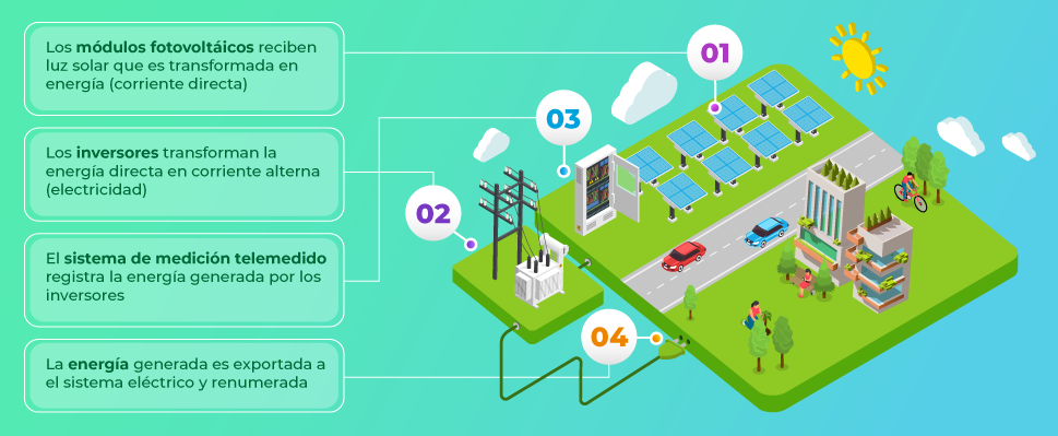 La energía generada es exportada a el sistema eléctrico y renumerada